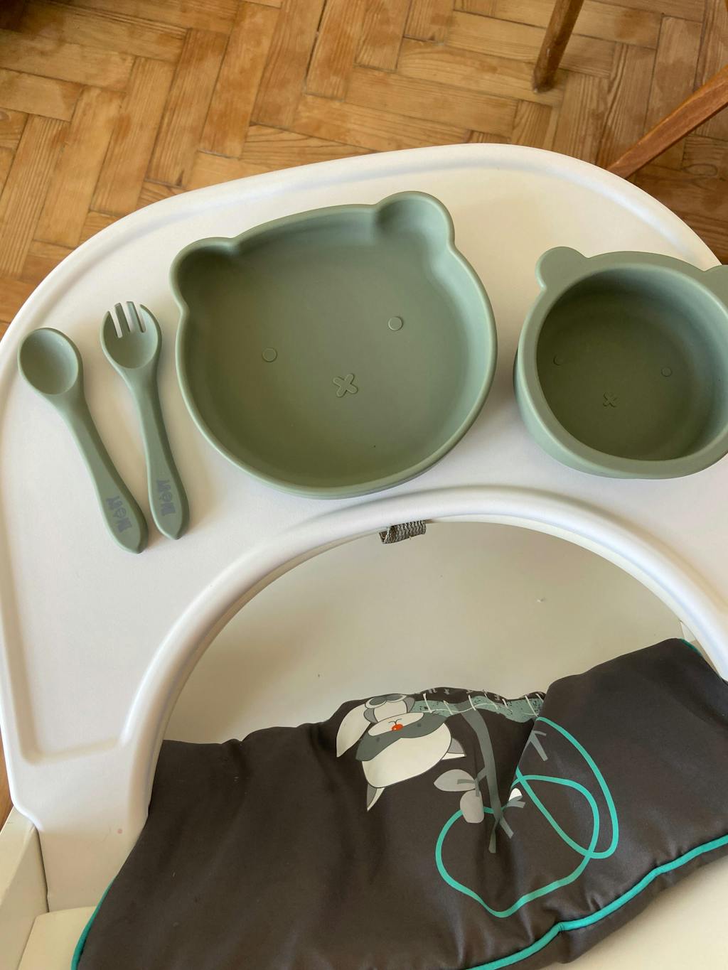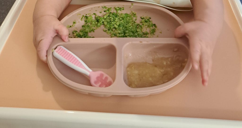lightweight, easy to clean, large enough to accomodate an adequate portion size for my 1.5 year old. Love the green colour. Spoon is too wide for my son to use but will come in handy in the future